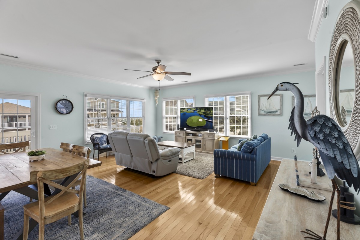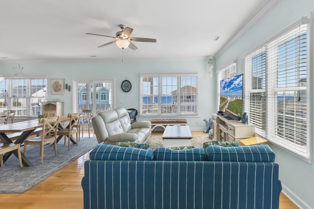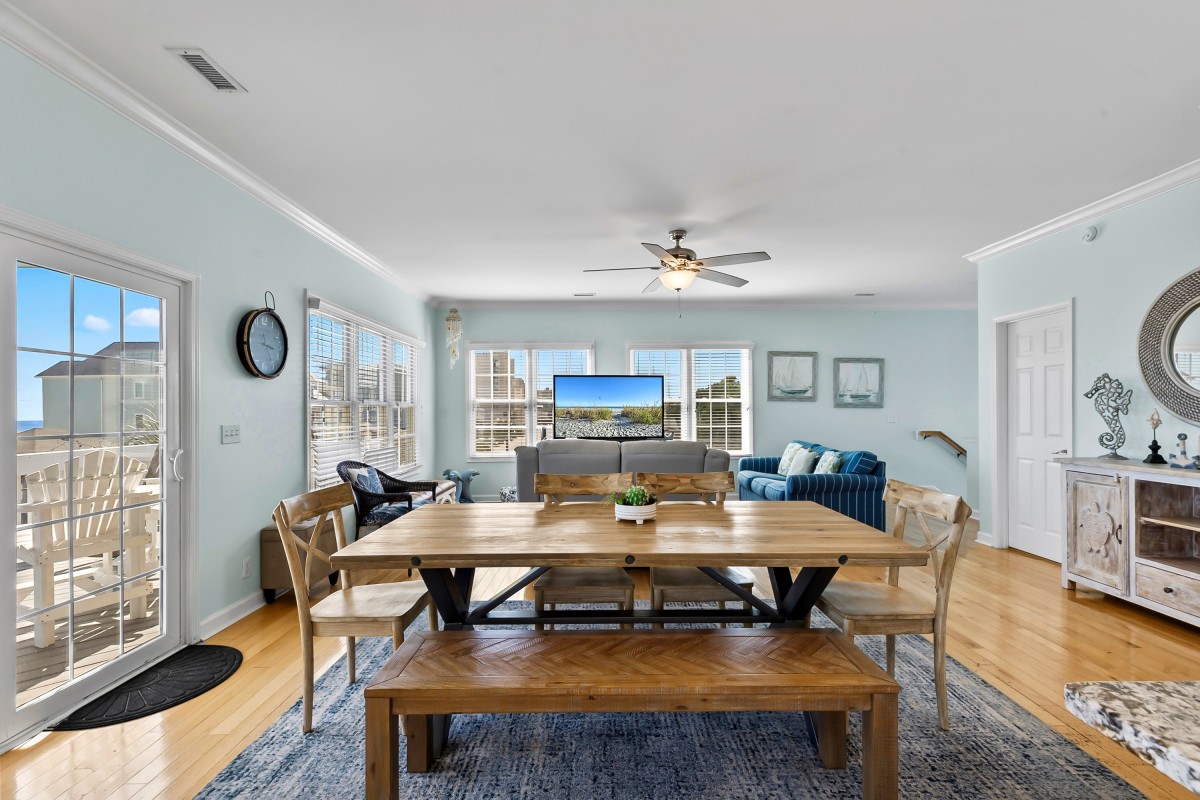 Lots of room inside and bathrooms. Great location and close to the beach. Overall, a good place to stay for a group of 3 families.
