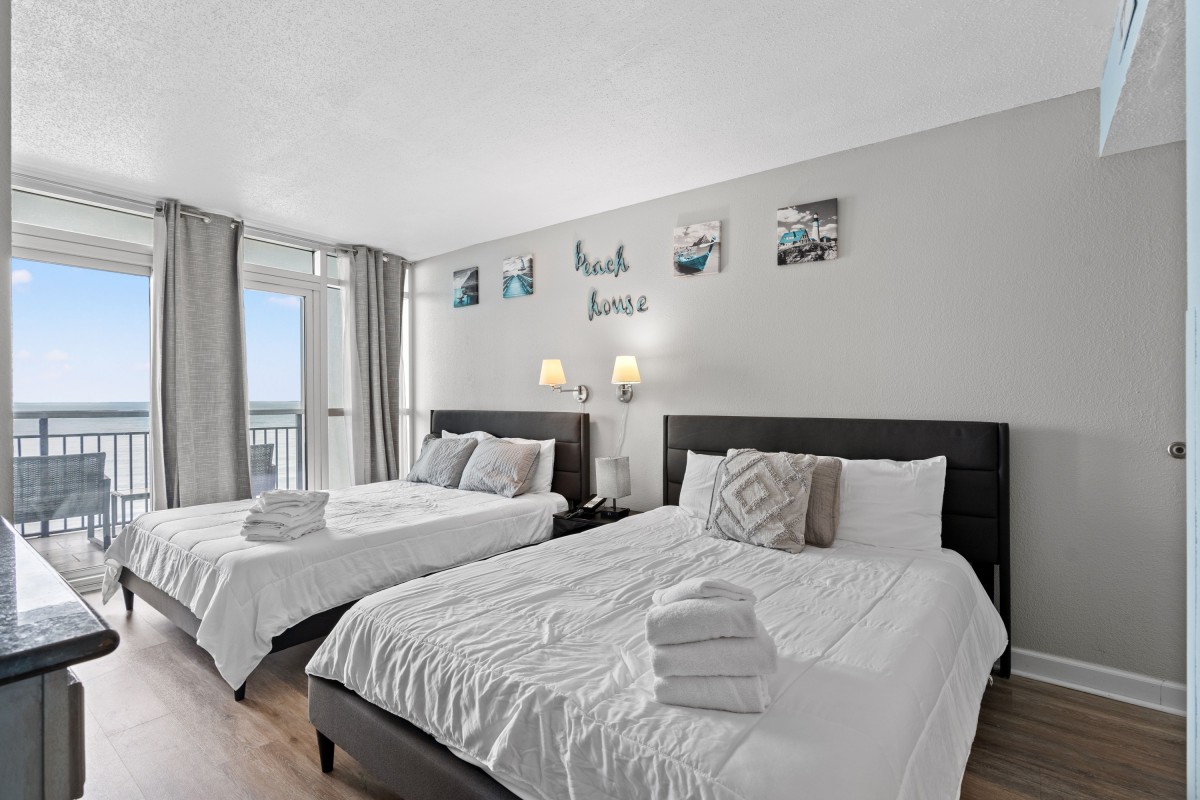 An oceanfront view is at your fingertips when you reserve Bay View Resort 604B. This Myrtle Beach has two beds, one bathroom, and is a non-smoking unit. It comes with one parking pass as well. You will also love having a small refrigerator and microwave in your room, perfect . It is closely located to the Myrtle Beach Boardwalk, Broadway at the Beach, and a number of seafood restaurants.