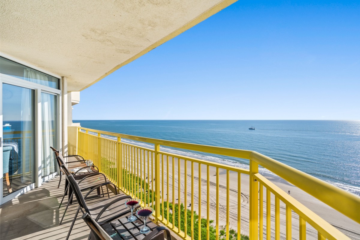 This was our " home " for two months while we looked for a house. What a treat! The views were outstanding! Imagine waking each morning to he most amazing sunrise! And the best sunset! Everything was within a few minutes away. Restaurants, entertainment, shopping, and the Myrtle beach airport. Very convenient! I actually cried when I left because it was so special to me. Each day we watched dolphins for hours hunting and playing! Thank you for such a wonderful experience!