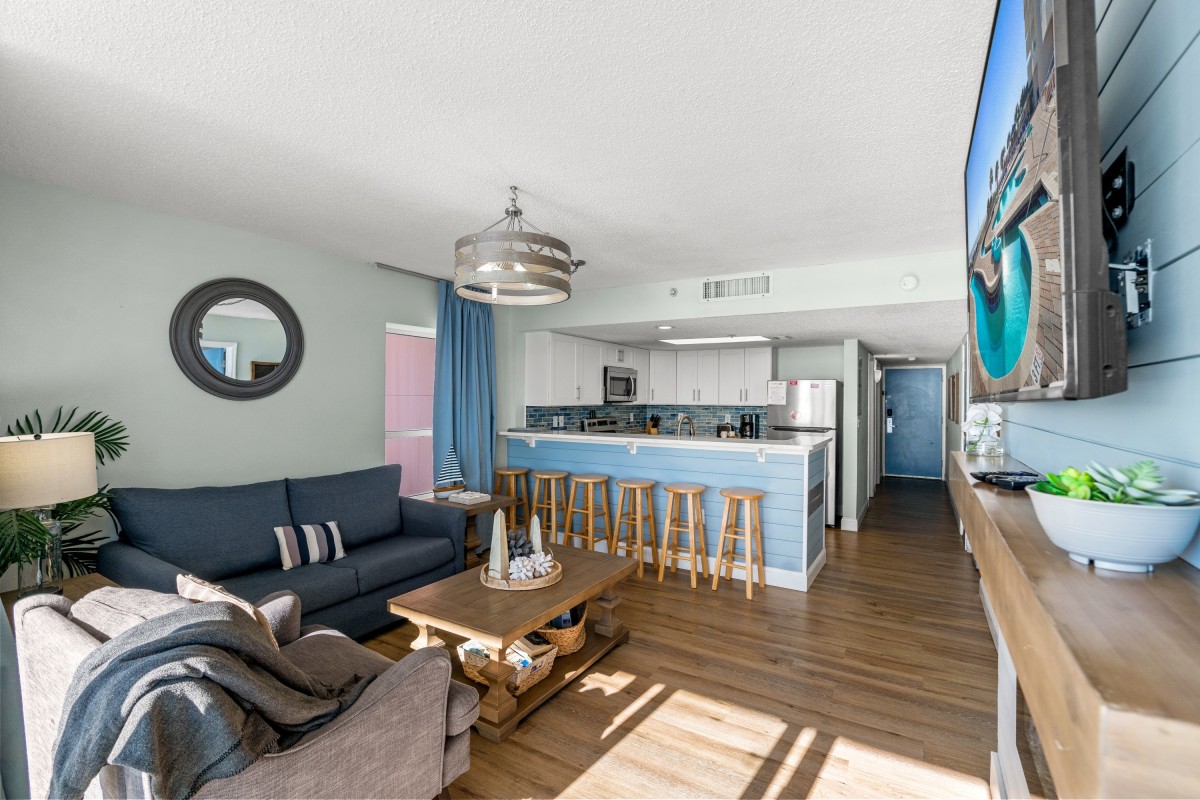 From the front door to the balcony on the opposite end of this North Myrtle Beach vacation rental, your family will be in awe of the beachy decorations, coastal ambiance and incredible Atlantic Ocean view you have when you vacation in Bay Watch I 1409. Vacation 14 stories up in the smoke-free Bay Watch Resort tower in an end condo that is innovatively designed to give you more sunlight, extra space and a fabulous view.