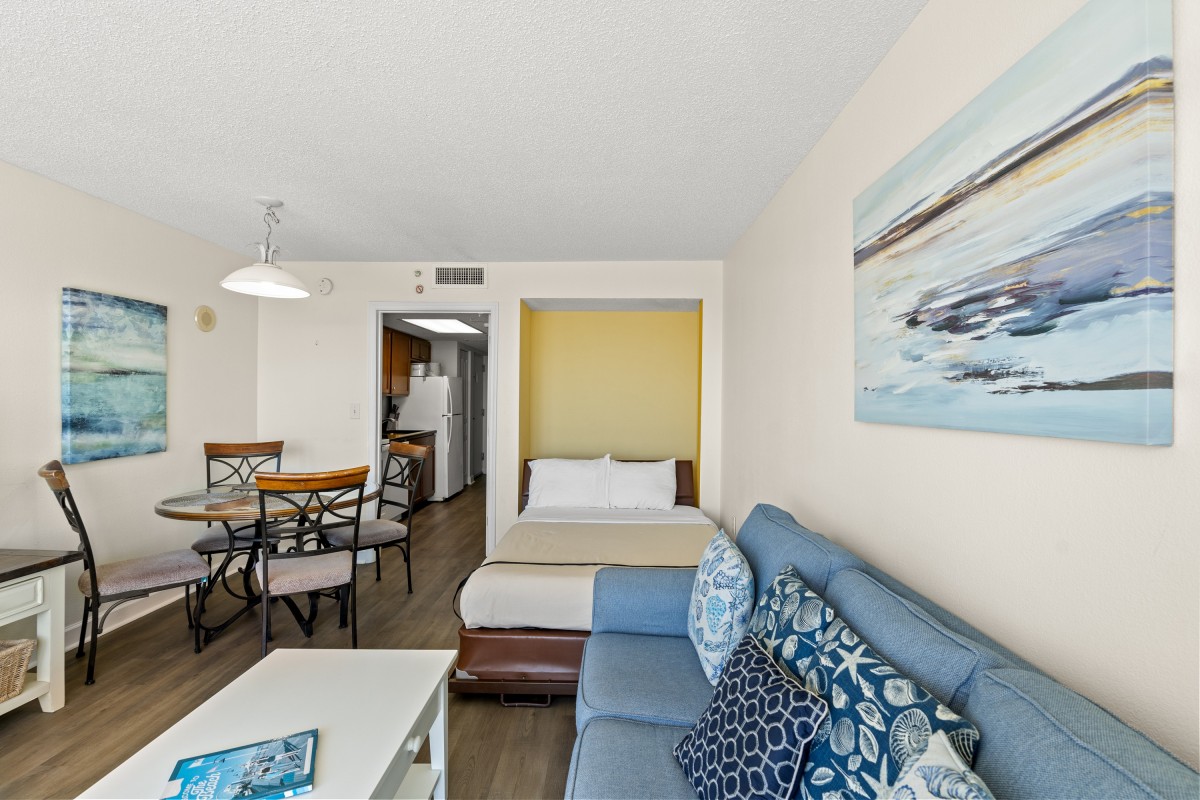 Bay Watch I 806 is a fully furnished condominium with wonderful central heating and air conditioning, an elevator, flatscreen CCTVs and amazing WIFI. This is the perfect getaway for a honeymoon, a family or a group of close friends. Pack lightly when vacationing at Bay Watch I 806 as there is a washer and dryer provided for your use on the 1st floor at this exquisite resort. You will fall in love with the kitchen which features gorgeous granite counters and full appliances including a dishwasher. Shop for healthy snacks and stock the refrigerator full the moment you arrive at Bay Watch I 806. The ocean balcony reveals a relaxing view of the magnificent Atlantic Ocean where the seagulls flutter in the winds like paper and the salty ocean breeze is entrancing.