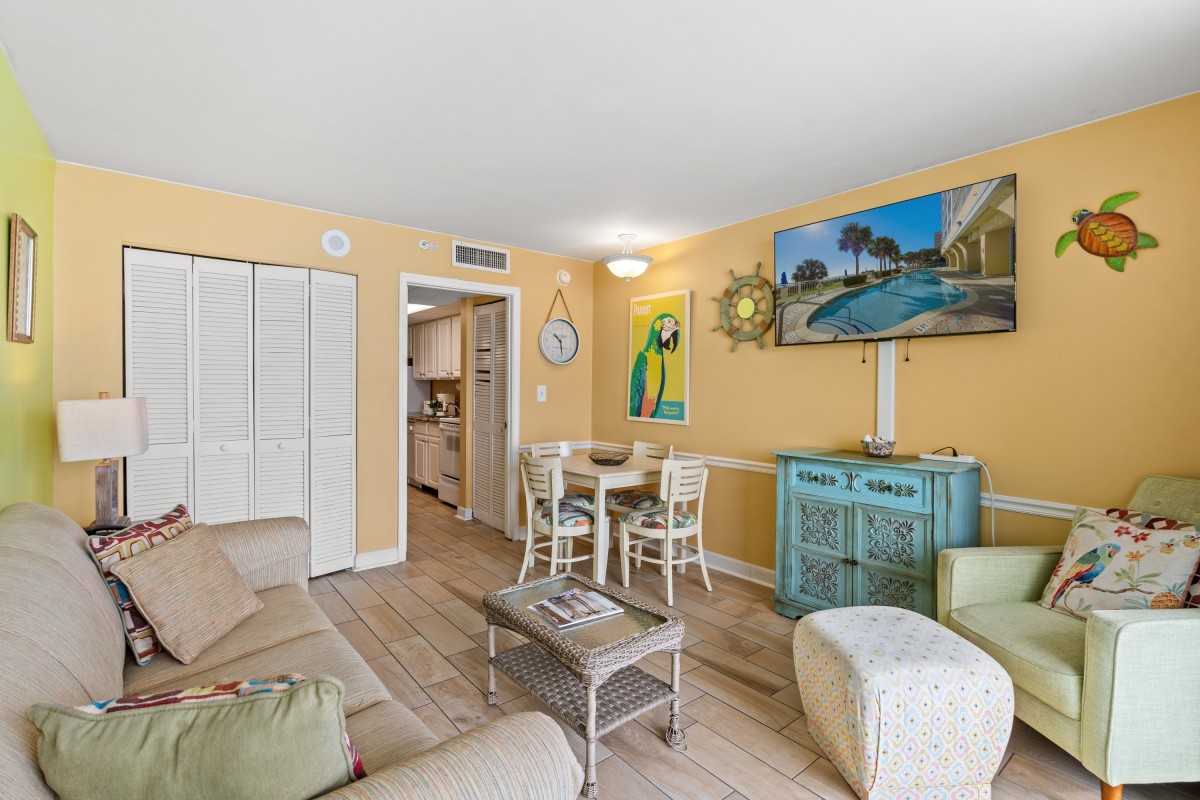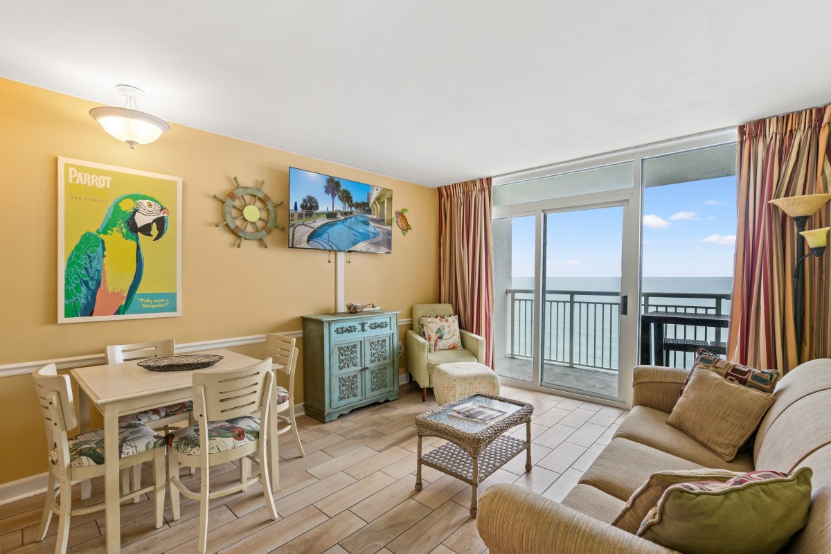 Have a magical time in Myrtle Beach with a stay at Camelot by the Sea 1702. This oceanfront condo is perfect for a small family or couple. Not just a standard hotel, this one-bedroom, one full bath condo comes with a kitchen, dining area, and separate living room. This non-smoking rental comes with two parking passes and access to an impressive list of amenities, including an onsite restaurant, game room, fitness room, and business center. In the heart of Myrtle Beach, Camelot by the Sea 1702 also puts you close to unique shops, restaurants, and amusements.