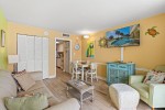 Spend time alone or with a loved one on the private balcony. This balcony has an astounding view from the 17th floor that is hard to beat. Two chairs and a table means there is room for you to bring your morning coffee or afternoon cocktail outside, and you will have a private, front-row seat to all the Atlantic Ocean has to offer. You will still have an amazing view indoors, from the comfy living room couch to the kitchen. You can easily prepare meals of all sizes in the fully equipped kitchen. Use the dishwasher for easy cleanup. Other amenities include two flatscreen TVs and central heating and air. The entire condo is bright with a tropical décor.