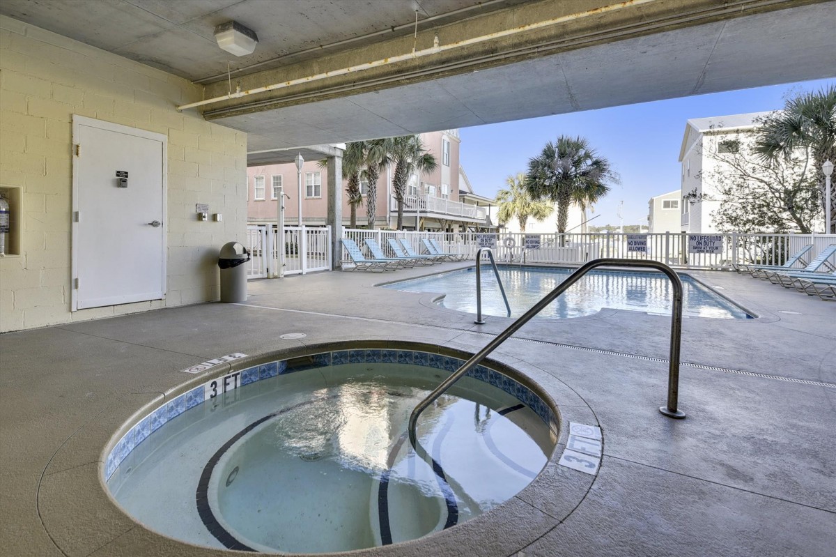 There are other amenities to make your stay comfortable including an in-unit washer and dryer, a Jacuzzi bathtub, flatscreen TVs, and WIFI. Don’t worry about keeping up with laundry during your beach vacation. Throw the beach towels in the washer and go about your day without pesky visits to the laundry mat. Enjoy the bubbles of a Jacuzzi tub in the master bathroom before going to sleep in the master bedroom with an ocean view. Two other bathrooms give enough room for everybody to get ready for a night on the town after a day at the beach. There is enough space for everyone in Cherry Grove Villas 206 with room to gather but also enough room for people to have their privacy. Everyone in the condo will be comfortable with central heating and air. No worries about AC window units not providing enough air for everyone to cool down.