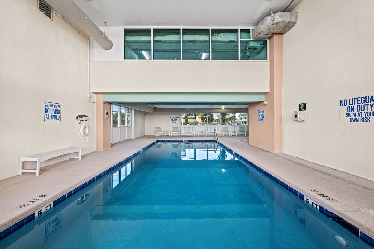 In this North Myrtle Beach area high rise you can swim in the indoor and outdoor pools, float on a lazy river, soak in an outdoor hot tub and splash in a kiddie pool. The fitness center keeps you on track and the beach just steps away for a refreshing morning run. Spend hours on the beach relaxing by the sound of the waves, the cool ocean breeze and the sand under your feet.