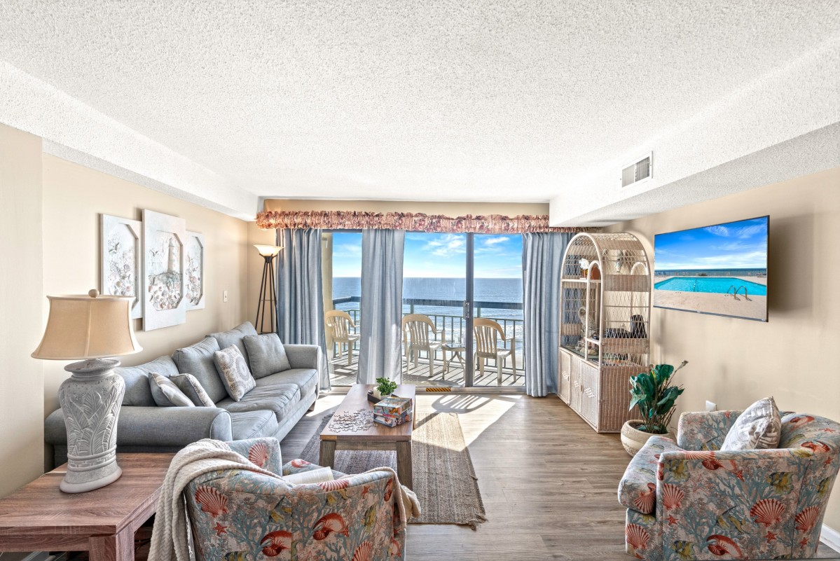 Featuring an oceanfront view and comfortable accommodations, the 2 bedroom, 2 bath condo at Oceans 605 is a wonderful family beach vacation destination. This condo has all the conveniences of home with all the amenities of a vacation retreat. The sandy beach is just beyond your private balcony and the popular North Myrtle Beach attractions are just minutes away.