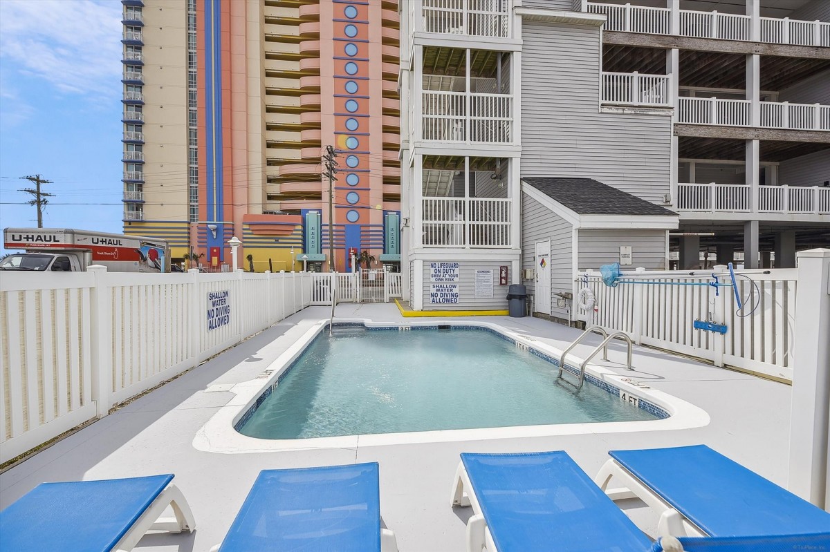 The resort provides up to three parking passes for your group, and there is a covered parking area. Grab your towel and head on down to the pool for a refreshing swim. Grab a lounger and get some sun in between laps, or while others in your party splash around. Then it is time to head back to Pier Watch Villas II 307, and to get your beach gear!