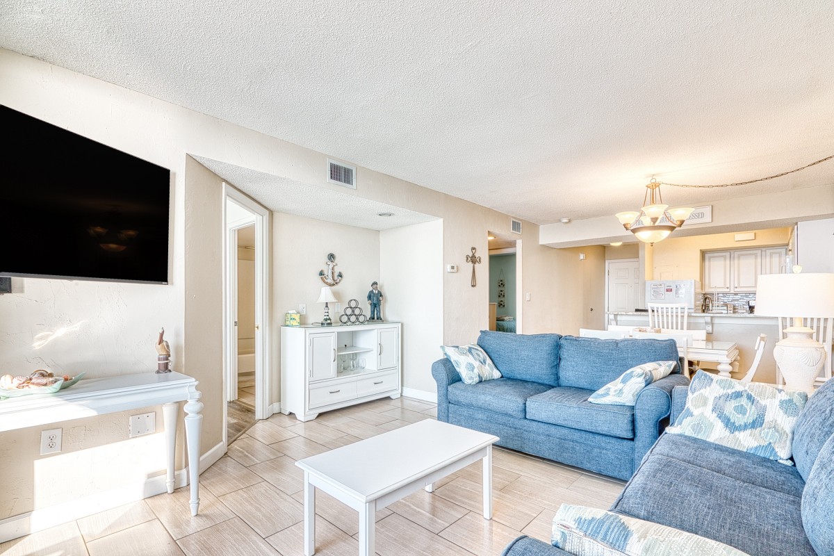 The oceanfront views are unbeatable at Sands Beach Club II 625. This oceanfront condo offers a view from the living room and master bedroom. Wake up each morning to the Atlantic Ocean. Sip a cup of fresh coffee as you drink in the sights and sounds of the beach. Seagulls, crashing waves, and the ocean breeze create beautiful sounds that calm your mind like nothing else can. Cook breakfast and prepare snacks for the beach in the fully equipped kitchen. There are full-sized appliances and a small breakfast bar. Find indoor entertainment with complimentary WIFI and two flatscreen TVs. Stay comfortable and escape the heat with central heating and air.