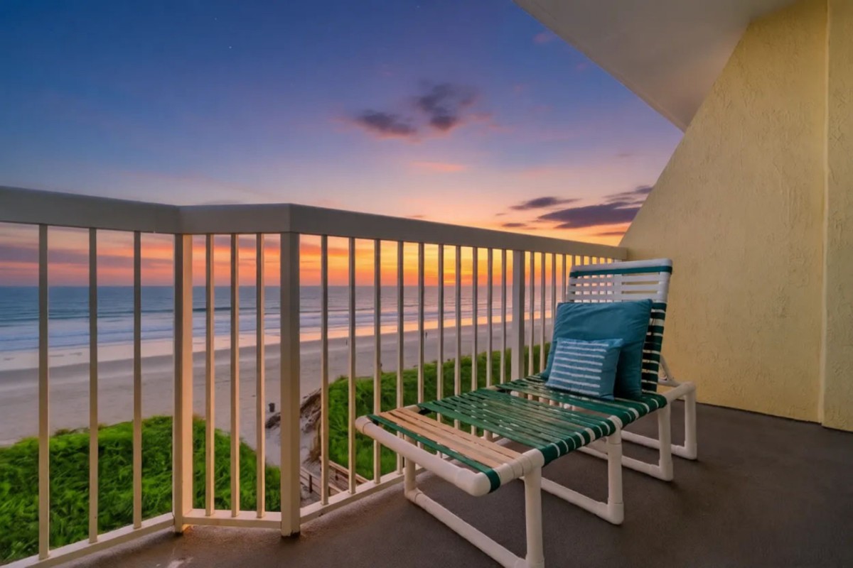 A gorgeous oceanfront balcony surrounds this lovely North Myrtle Beach condo that sits in the center of the building and on the closest floor to the beach, assuring you of glorious views of the Atlantic Ocean at any time of day on your North Myrtle Beach vacation. You can see stunning sunrises, breathtaking sunsets, and tide changes from the privacy of an oceanfront condo. After a fun day on the beach and an evening of entertainment in North Myrtle Beach, the balcony is a great place to end the day as the moon illuminates the rolling waves.