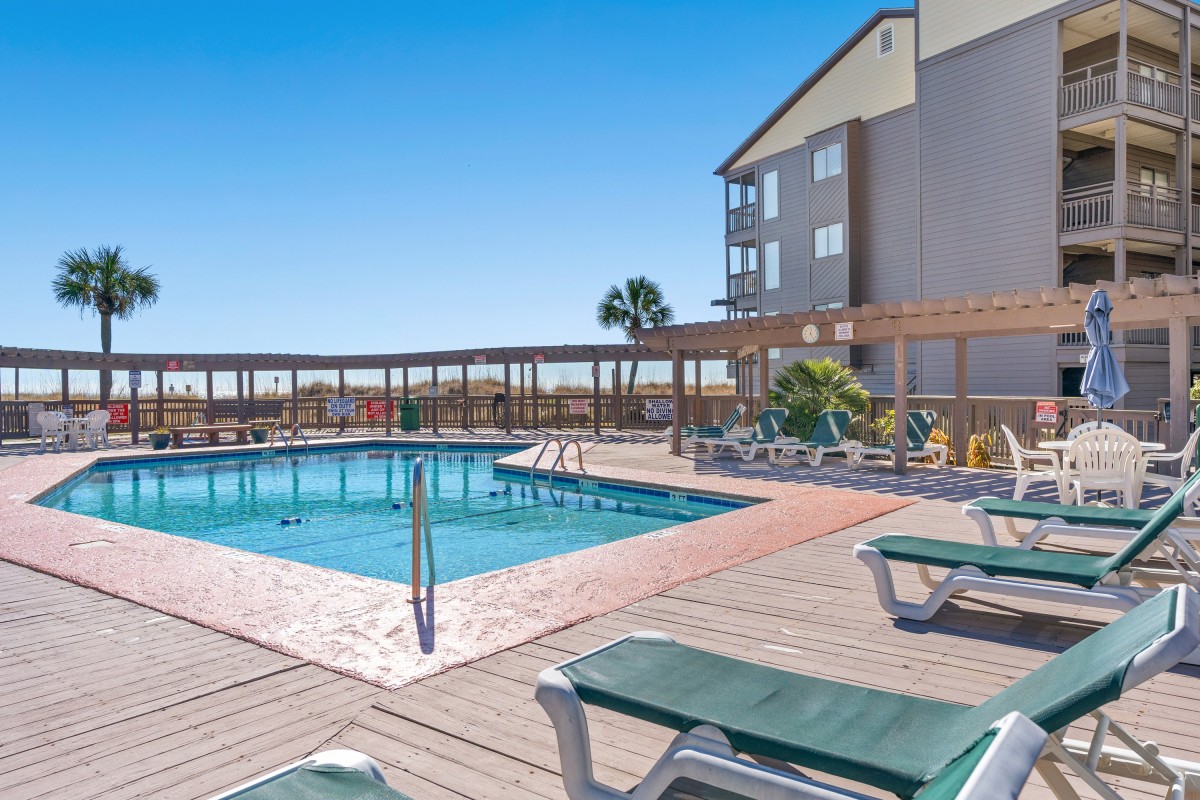 When you’re not on the beach, take advantage of the resort amenities: cool off in the outdoor pool, unwind in the hot tub, or enjoy a friendly tennis match. There’s even a kiddie pool for added fun.