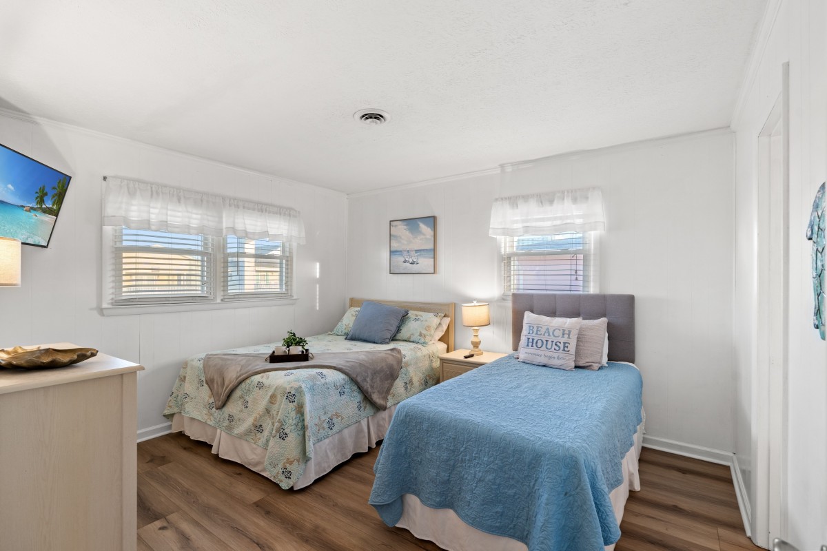 Warm tides and mellow vibes await you at Catch N’ Relax. Situated in the charming Cherry Grove section of North Myrtle Beach, this elegant beach home features four bedrooms and two bathrooms. With abundant room, this beach home is the perfect rental for any family reunion or Grand Strand golf trip.
