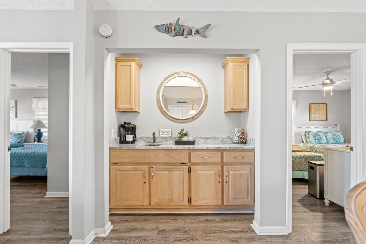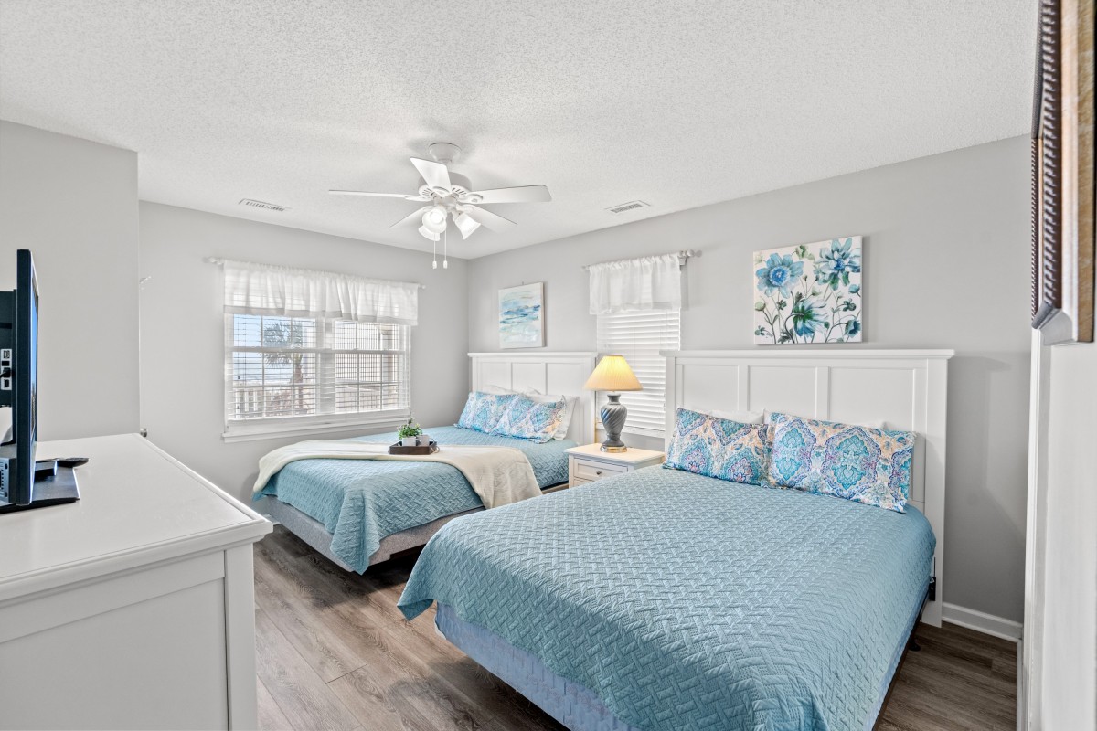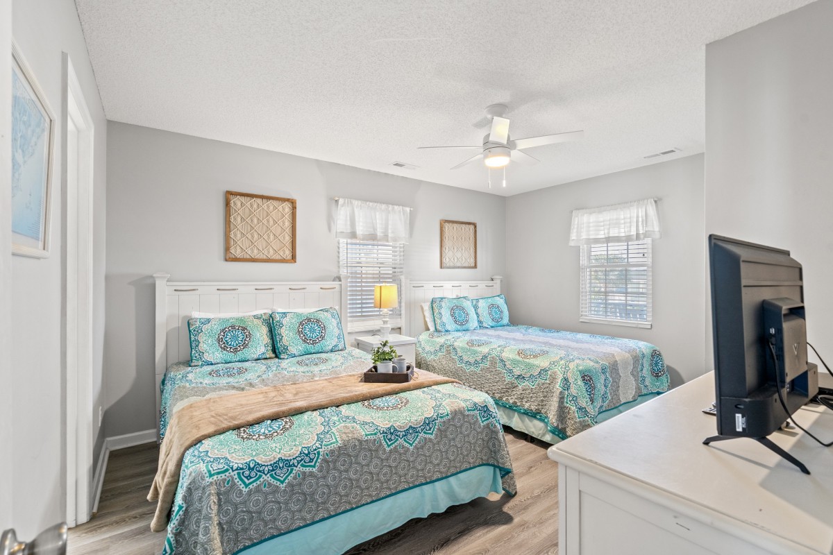 A private boardwalk transports one and all up and over the dunes to the sandy shore. Shoes not required. And an on site grill at this North Myrtle Beach vacation rental home translates to trouble free meals of seafood or burgers and dogs. Delicious. Spend all day building sandcastles and combing the shore for shells in picturesque North Myrtle Beach, South Carolina. Fish from the nearby pier and or rent jet skis to ride the ocean waves. Returning to Kathy's Cottage other amenities take center stage. An enclosed outside shower rids one and all of salt and sand. Then there is a washer and dryer where suits and skivvies should be dropped.