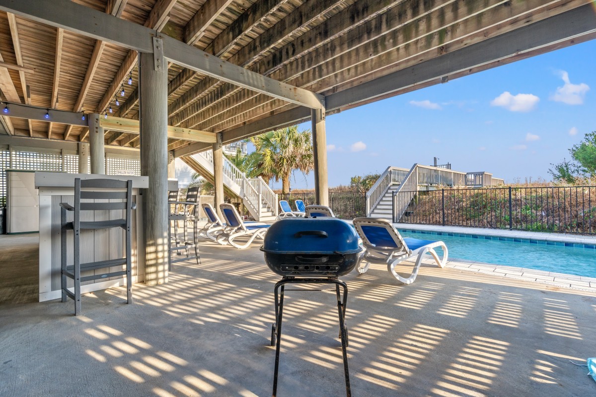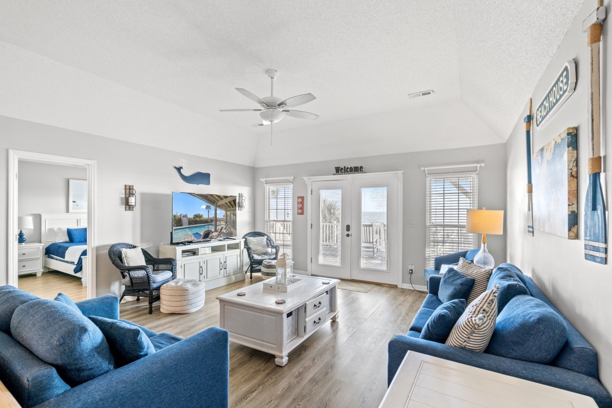 What a great location with direct access to the beach. We didn’t have to cross any streets, drive and find a place to park or take a shuttle, it was very nice! The house itself was just the right size with a veranda/porch facing the ocean and my wife had her breakfast and coffee there each morning. The added pool was very nice as well as not everyone in our party are beach goers and my grandson spent considerable time in the pool as well as the beach. It was quiet too even though there were houses and condos adjacent. It’s not as large as some beach houses we’ve rented but it was cozy and just right for our family. Bathrooms were small but large enough. Finally the cottage was very neat and clean, we were well pleased. If there was any problem, and this I believe is out of the control of the owner and manager, is the high curbs caused our van to scrape the front bumper whenever we pulled out. It seems that every house or condo along the road had the identical problem as every curb has scrape marks. I found a method to alleviate it so in the end not a problem for us. To summarize this is a nice, clean, cozy home with easy and safe beach access!