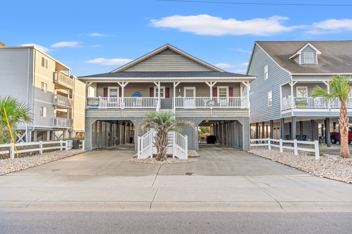 No one will be disappointed when you chart your course for Kathy's Cottage in North Myrtle Beach, South Carolina. This is a non smoking oceanfront beach vacation house. Four bedrooms, four baths, and a spacious floor plan delivers an awesome oceanfront view from nearly every angle. Kathy's Cottage in North Myrtle Beach sits high atop stilts like the classic beach homes many remember from childhood. Amenities are satisfying and then some. There are DVD players and flatscreen TVs. There is an oceanfront balcony studded with rocking chairs that sports a fine oceanfront vista.