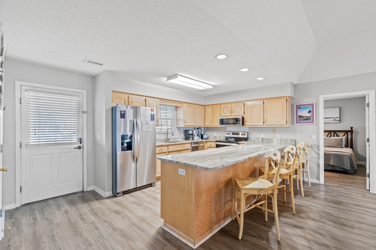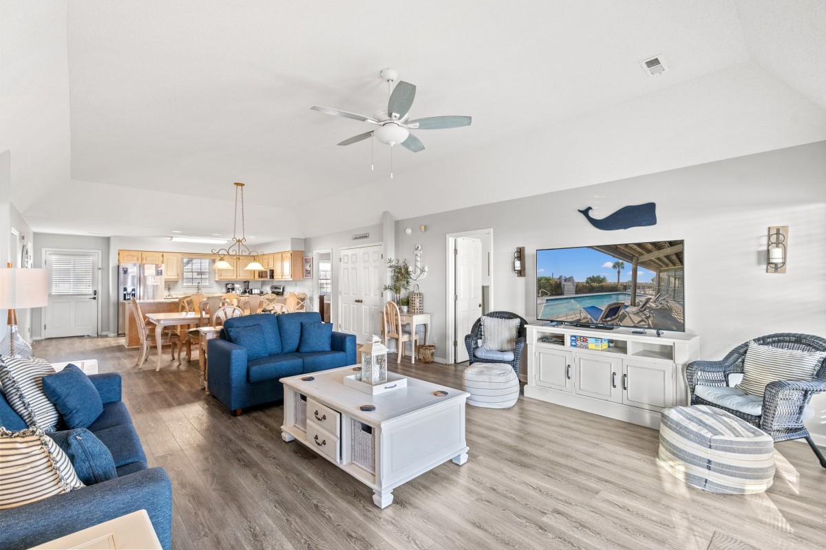 We stayed at Kathy’s Cottage the week of 8/12-8/19 The house was perfect for the 8 of us. The deck is beautiful. The pool is terrific to refresh yourself after a day at the beach. Our only issue was the back door leading to the deck. It was difficult to open from the inside going outside. I’m sure being on the beach and the elements beats that up. Overall our week was great and the house met all our needs. “Kathy” would be happy about the memories we made.