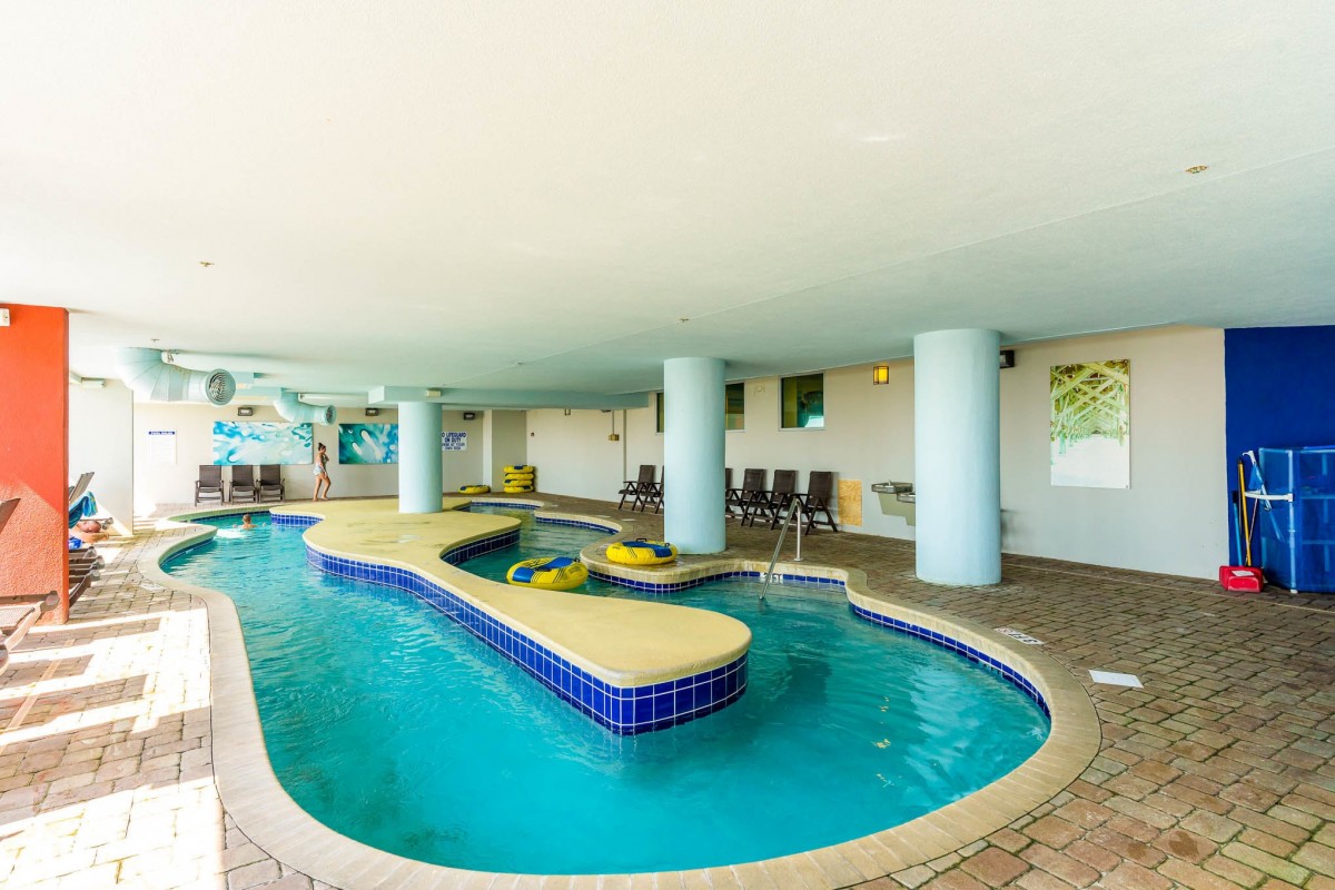 This oceanfront resort in Myrtle Beach is designed with families in mind. Their pool deck leads you indoors and out where you will find swimming pools, hot tubs, lazy river and even a kiddie pool. For more recreation on site there is a game room and if a run on the beach is not enough to curb your appetite for fitness, there is an exercise room available to guests of Grand Atlantic Resort, too.