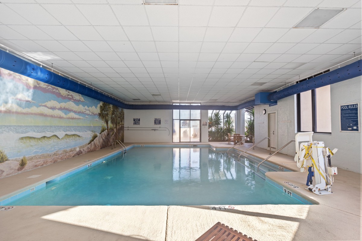 Enjoy all the family-friendly activities for which Myrtle Beach, SC is famous while staying at Ocean Forest Plaza, a Myrtle Beach area high rise on the beach. This high-rise features palm tree landscaping outside and a swimming pool inside, with the Atlantic Ocean and wide sandy beach in your backyard. Bring the family to this resort for your Myrtle Beach vacation and treat yourself to a quiet side of Myrtle Beach.