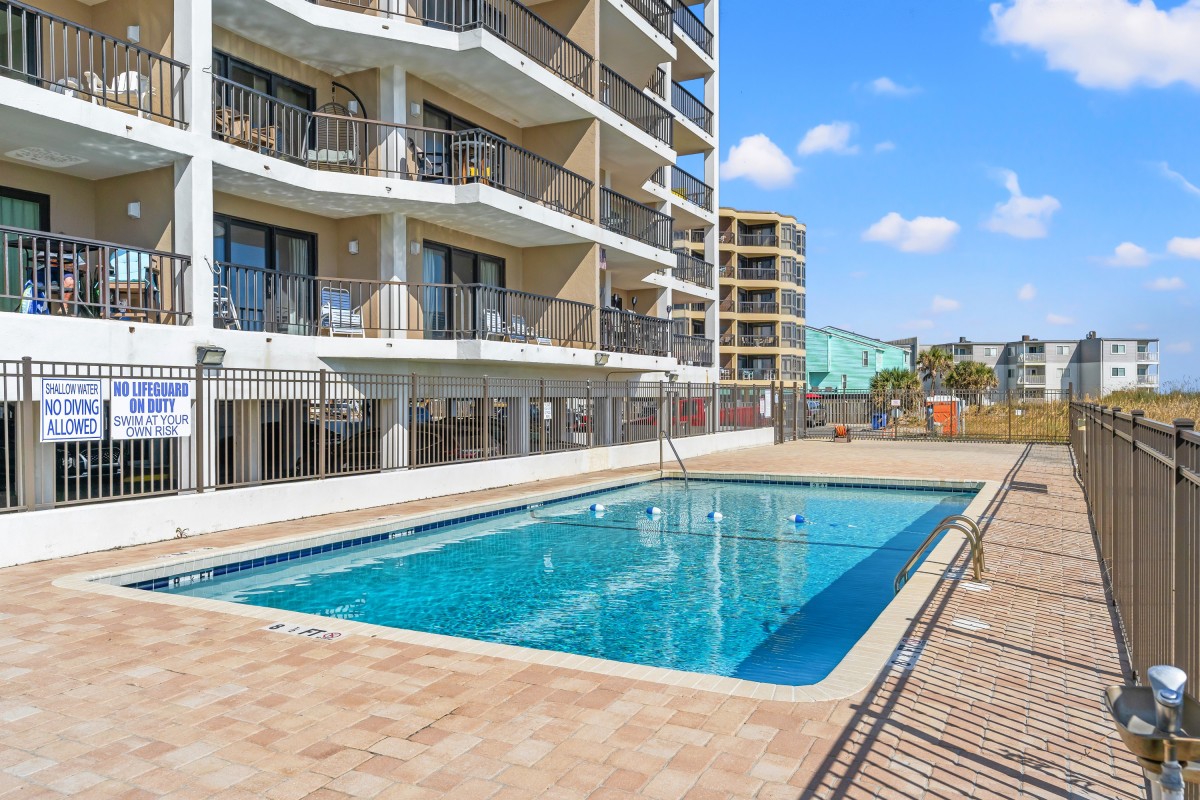 The beaches of North Myrtle Beach, South Carolina make wonderful playgrounds where friendly games of volleyball or beach bocce ball are popular with the locals and tourists alike. Sink your bare toes into the warm sand. Sit still and you might see a timid crab emerge from a small hole in the sand dune or watch carefully for the dorsal fins of dolphins as they swim down the beach. There is so much to do on the beachfront and it is so convenient to engage in all the popular beach activities when your North Myrtle Beach vacation rental is on the oceanfront. Take a dip in the sparkling blue swimming pool.